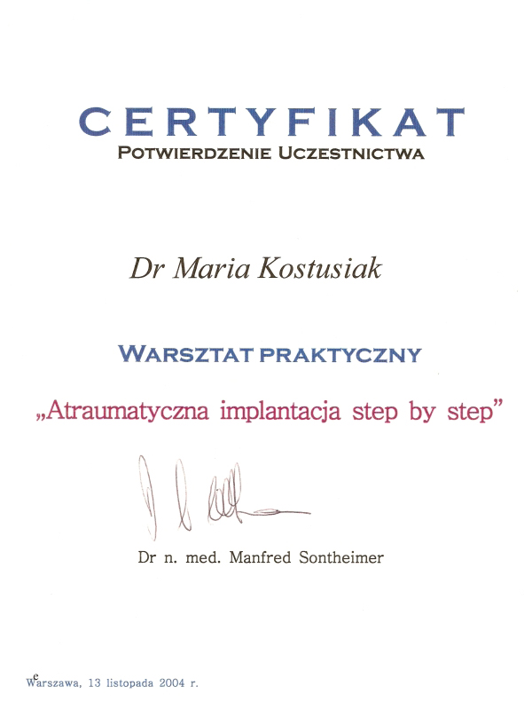 Atraumatyczna implantacja step by step – Warszawa 2004