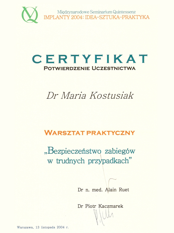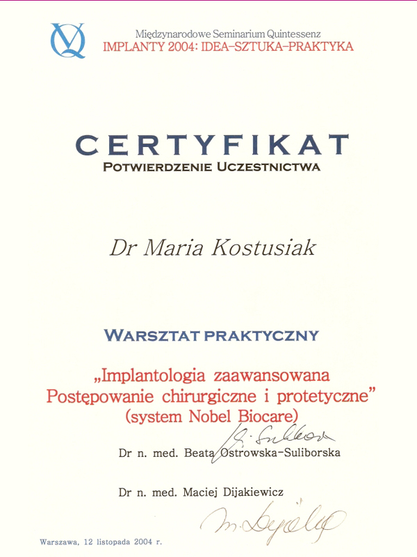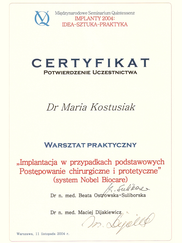 Implantacja w przypadkach podstawowych – Warszawa 2004