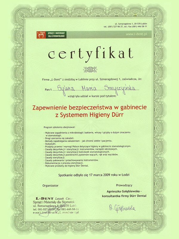 Zapewnienie bezpieczeństwa w gabinecie z Systemem Higieny Durr – Łódź 2009
