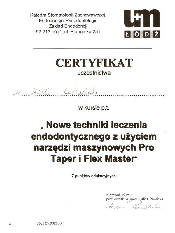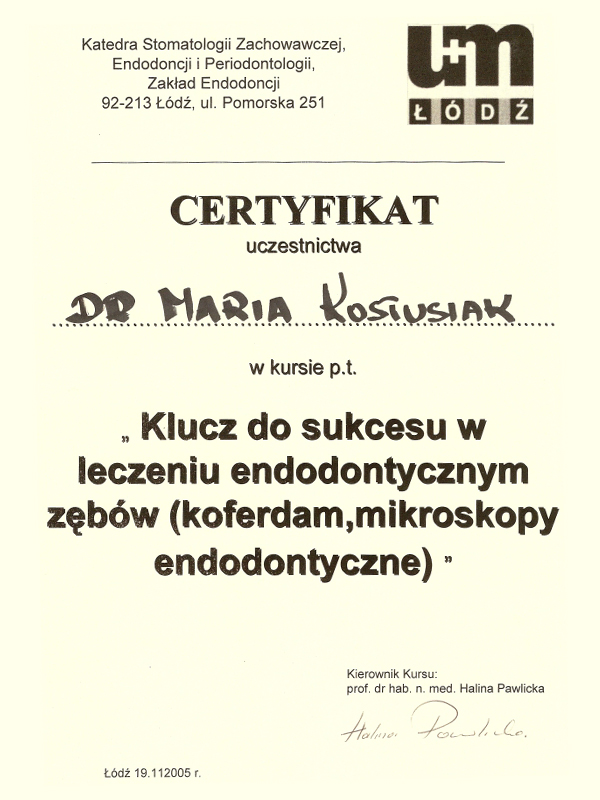 Klucz do sukcesu w leczeniu endodontycznym – Łódź 2005