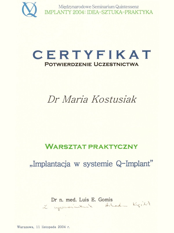 Implantacja w systemie Q-Implant – Warszawa 2004