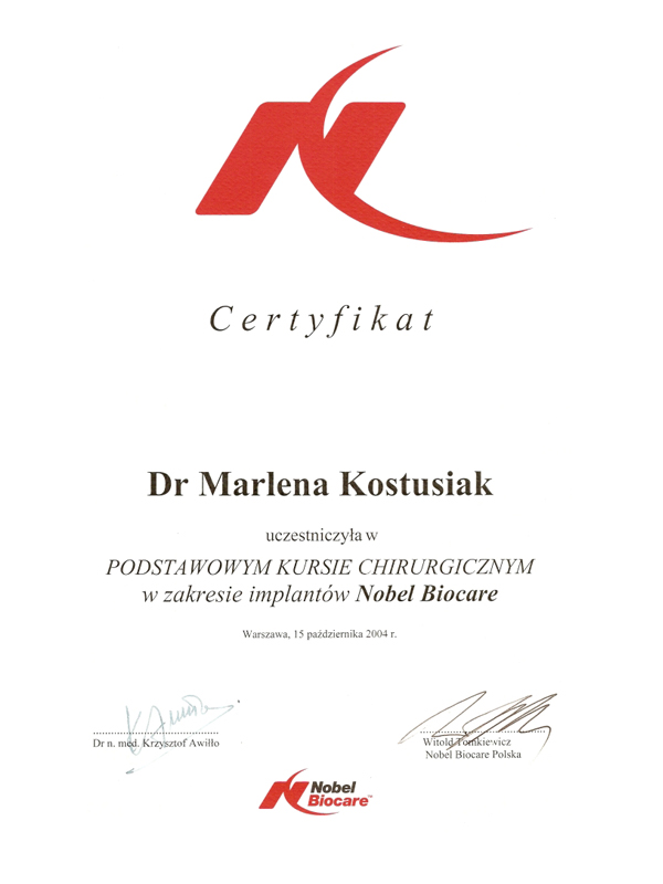 Kurs chirurgiczny w zakresie implantów Nobel Biocare – Warszawa 2004