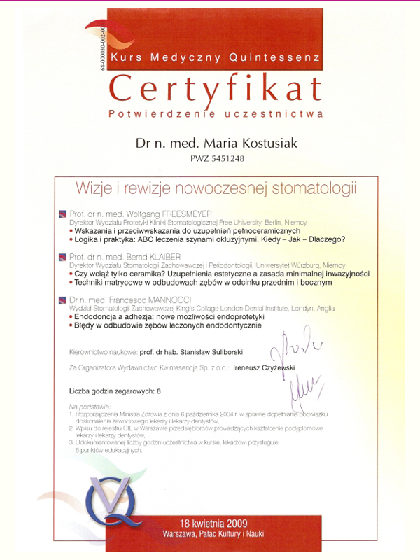 Międzynarodowe Seminarium Quintessenz – Warszawa 2004